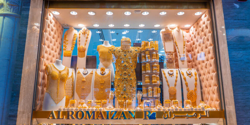 • The Gold Souk and its large number of shops with magnificent jewellery displays. It’s the largest of its kind in the Middle East.